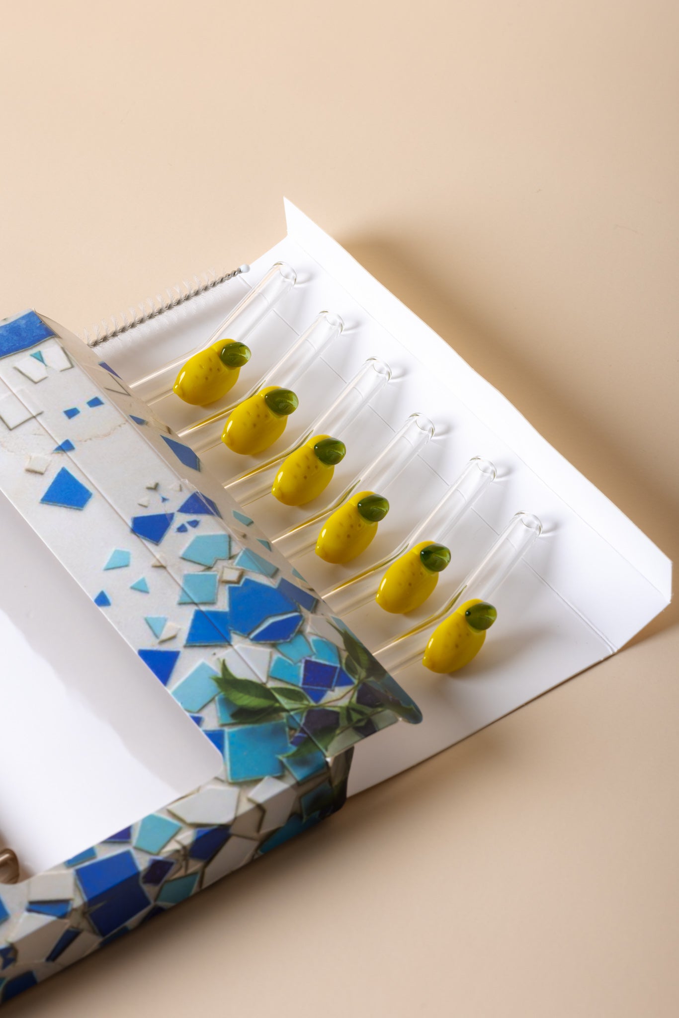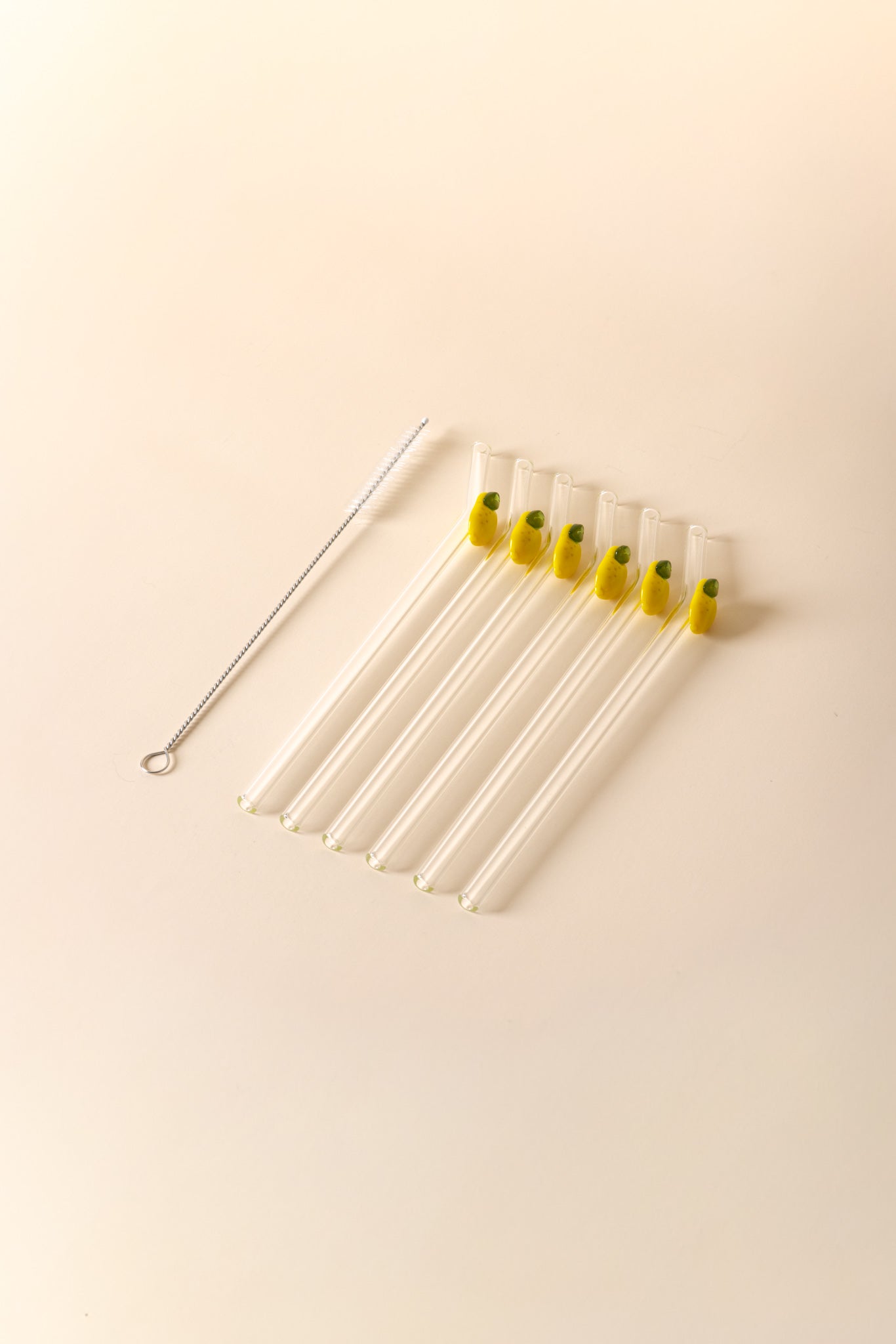 The Lemon Love Set includes 6 bent straws and 1 cleaning brush. The straws are 8" in length, 8mm in diameter.